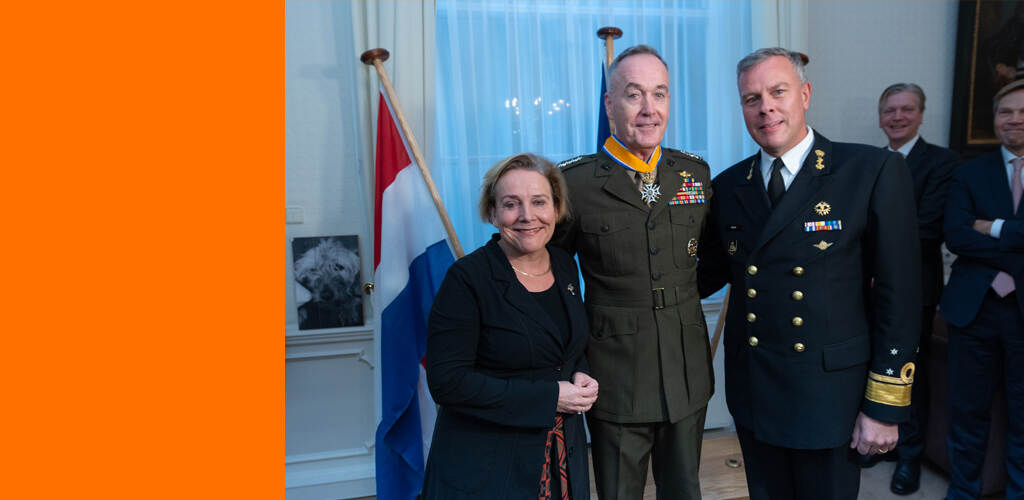 De hoogste militair van de Amerikaanse krijgsmacht generaal Joe Dunford is benoemd tot commandeur in de Orde van Oranje-Nassau met de zwaarden. Hij kreeg de hoge onderscheiding uit handen van minister Ank Bijleveld.