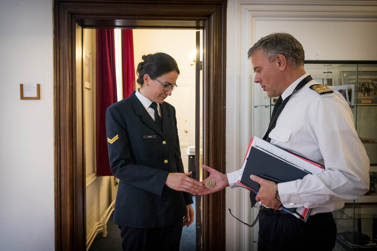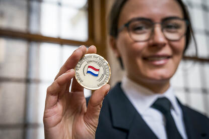 Luitenant-admiraal Rob Bauer gaf Anna zijn ‘coin’. Een munt die hij sporadisch weggeeft als blijk van erkenning en waardering. “Je hebt een groot effect op de defensieorganisatie. Dat gaat veel verder dan alleen het winnen van de prijs. Je inspireert en enthousiasmeert mensen.”