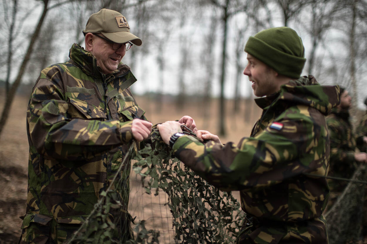 Zo werd hij maandag in gevechtstenue gehesen en wilde het vrijdag eigenlijk niet meer uitdoen. “Met het vlekkenpak aan gebeurt er iets”, benadrukt hij. “Dan ben je ineens 1 van hen. Toen ik aan het begin van de week in eigen kostuum de eetzaal binnenkwam keek iedereen op. In het groen niemand.”