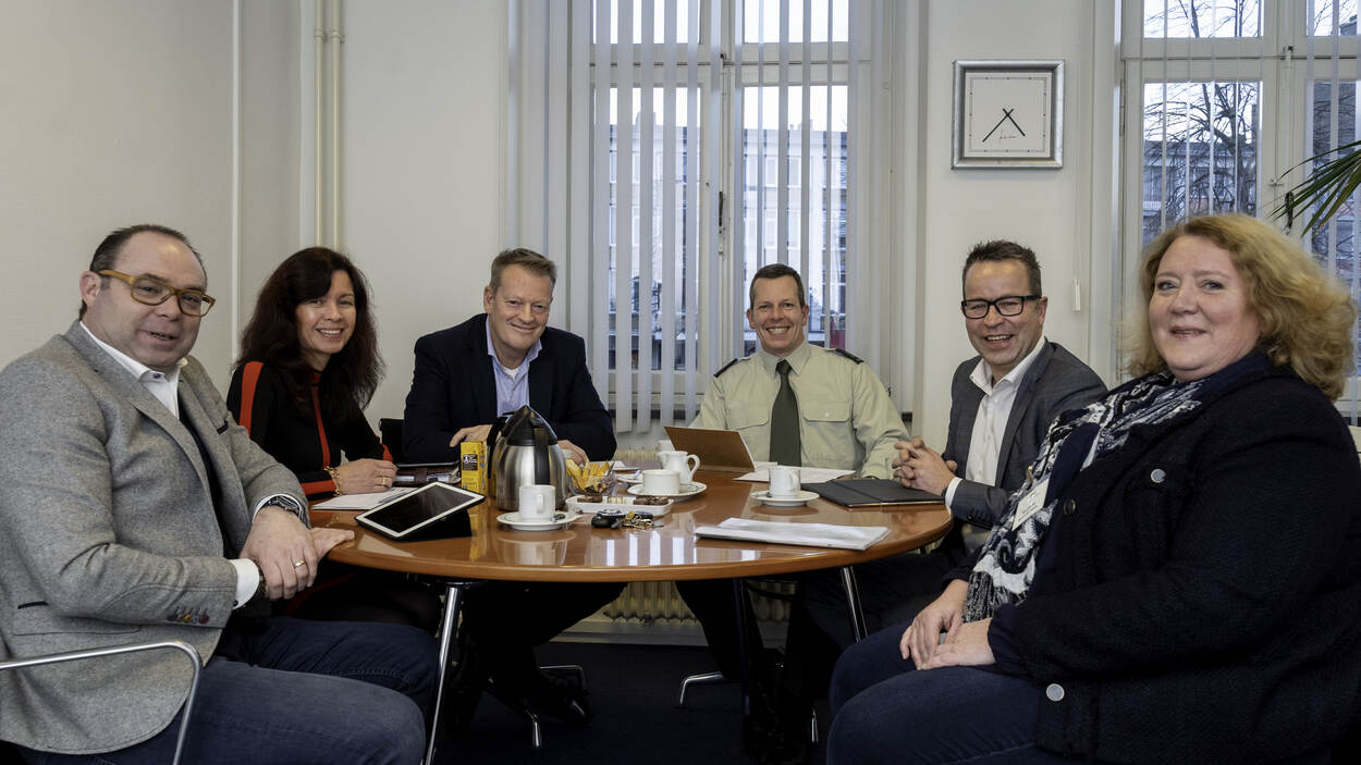 Overste Goossens (uiteraard midden): "Ik ben onder de indruk. Een gemeente Kerkrade moet echt veel ballen tegelijkertijd in de lucht houden."