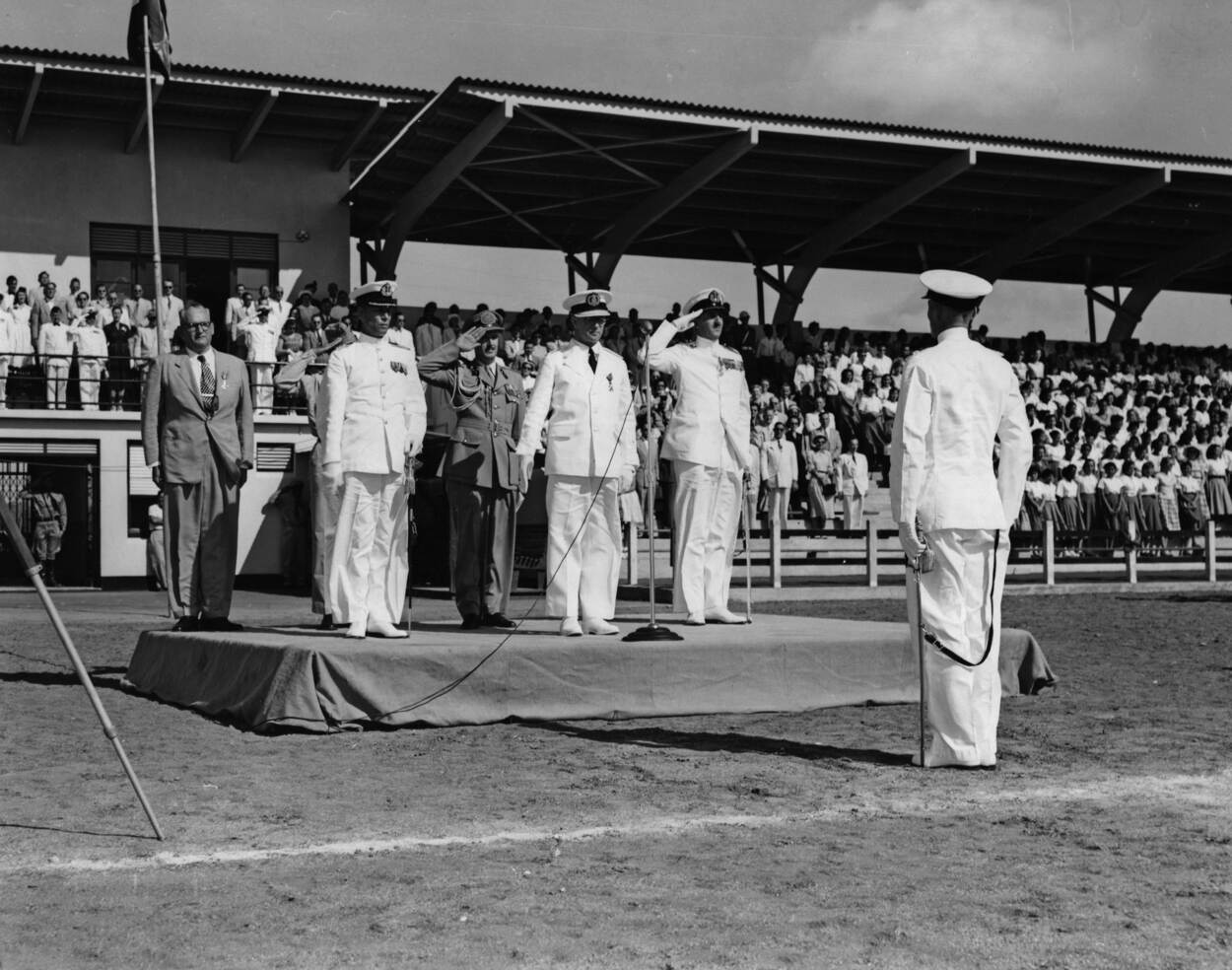 Cineast Henk Weener is er met zijn filmcamera bij om de ceremonie op beeld vast te leggen. Korpsgenoten van Curaçao en de bemanningen van Hr. Ms. Willem van der Zaan en Hr. Ms. Ceram versterken de militaire aanwezigheid. Gouverneur van de Antillen Struycken spreekt Dourlein toe en bevordert hem tot ridder. Ridders Van Dulst en Hakkenberg geven de kapitein een ridderslag als welkom in het broederschap. Schoolkinderen op de zijtribunes kijken hun ogen uit naar al die blinkende witte marinepakken.