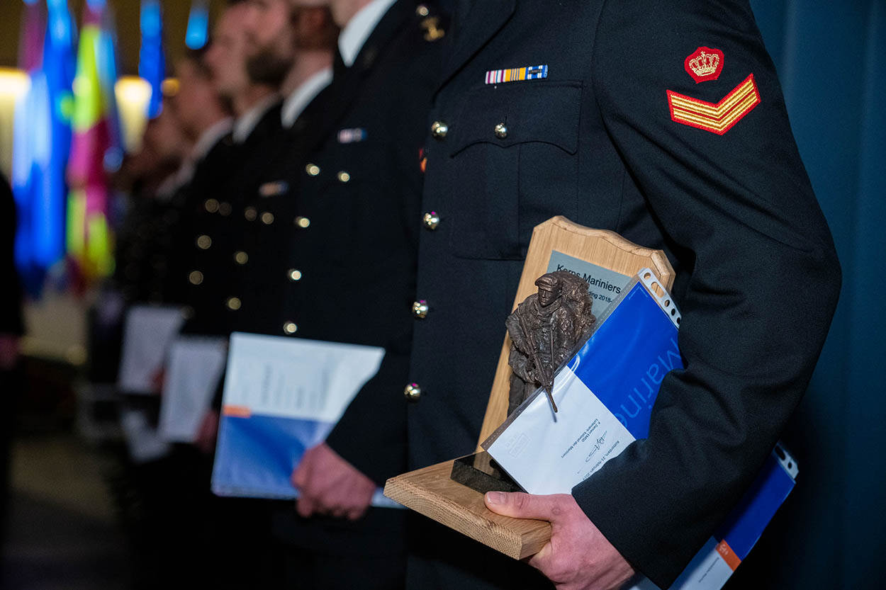Het Mariniers Opleidingscentrum heeft weer nieuwe korporaals afgeleverd. De mannen ontvingen op de Rotterdamse Van Ghentkazerne hun certificaat voor het behalen van de Voortgezette Vakopleiding. Foto: Louis Meulstee.