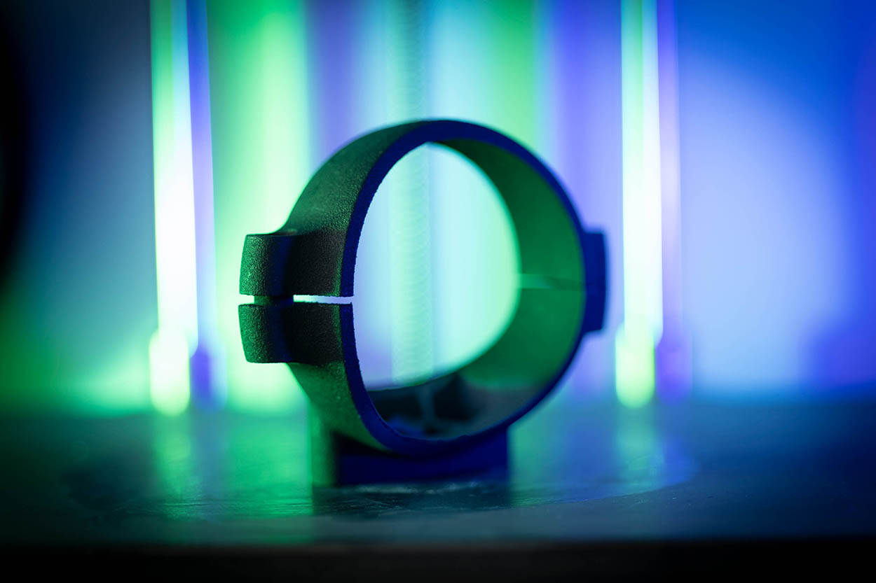 Zonder tekst en uitleg is het misschien een ietwat vreemde foto, maar deze camerahouder is gemaakt met de 3D-printer. Met deze vorm van printen wordt binnen de krijgsmacht volop geëxperimenteerd. Bijvoorbeeld voor het maken van onderdelen. Foto: Herman Zonderland.