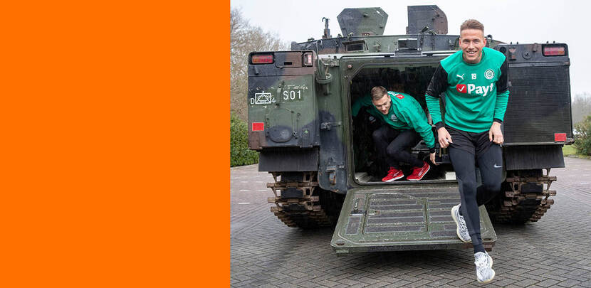 Militairen en topsporters hebben best veel overeenkomsten met elkaar. Dat zei sportinstructeur adjudant Brugt Bergsma tegen het Dagblad van het Noorden bij een bezoek van de selectie van voetbalclub FC Groningen aan 43 Gemechaniseerde Brigade.