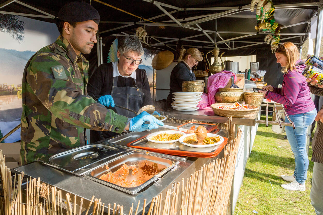 Zoals de kleine Lena en haar moeder Kirsten. “We wonen dichtbij Bronbeek, maar het is de eerste keer dat we op dit festival komen. Wel zijn we eerder bij het kindercarnaval geweest”, zegt Kirsten, terwijl haar dochter gretig koekhapt. “Het gaat ons puur om het vermaak, al merk je dat het hier geschiedenis ademt. Daar pakken we toch wat van mee.”