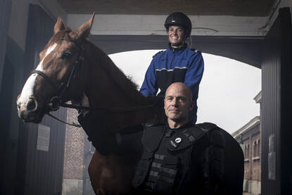3 maanden lang helpen 2 ruiters van de Bereden Brigade van de Koninklijke Marechaussee de Belgische Federale Politie in Brussel met het trainen van nieuwe paarden. België heeft een tekort aan ruiters en de marechaussee kan hierin ondersteunen.