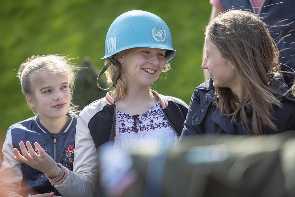 Geboeid hangen ze aan zijn lippen, de leerlingen van groep 8 van de Haagse basisschool Zorgvliet. En natuurlijk willen ze allemaal even die blauwe VN-helm op van Libanon-veteraan Frank Kroon. Of 'ie toen ook een Iphone had om naar huis te bellen? Schaterend gelach als ze het antwoord horen: “Nee, contact met thuis ging via brieven en cassettebandjes...” En terwijl de miniatuurtreinen van Madurodam langs tuffen, begint de voor even weer 19-jarige sergeant Frank aan een nieuw verhaal over zijn spannende nachtelijke patrouille in een vreemd, ver land. In de miniatuurstad werd met de ‘Verhalendag’ het startsein gegeven voor verschillende projecten in aanloop naar de Nationale Kinderherdenking 4 mei.