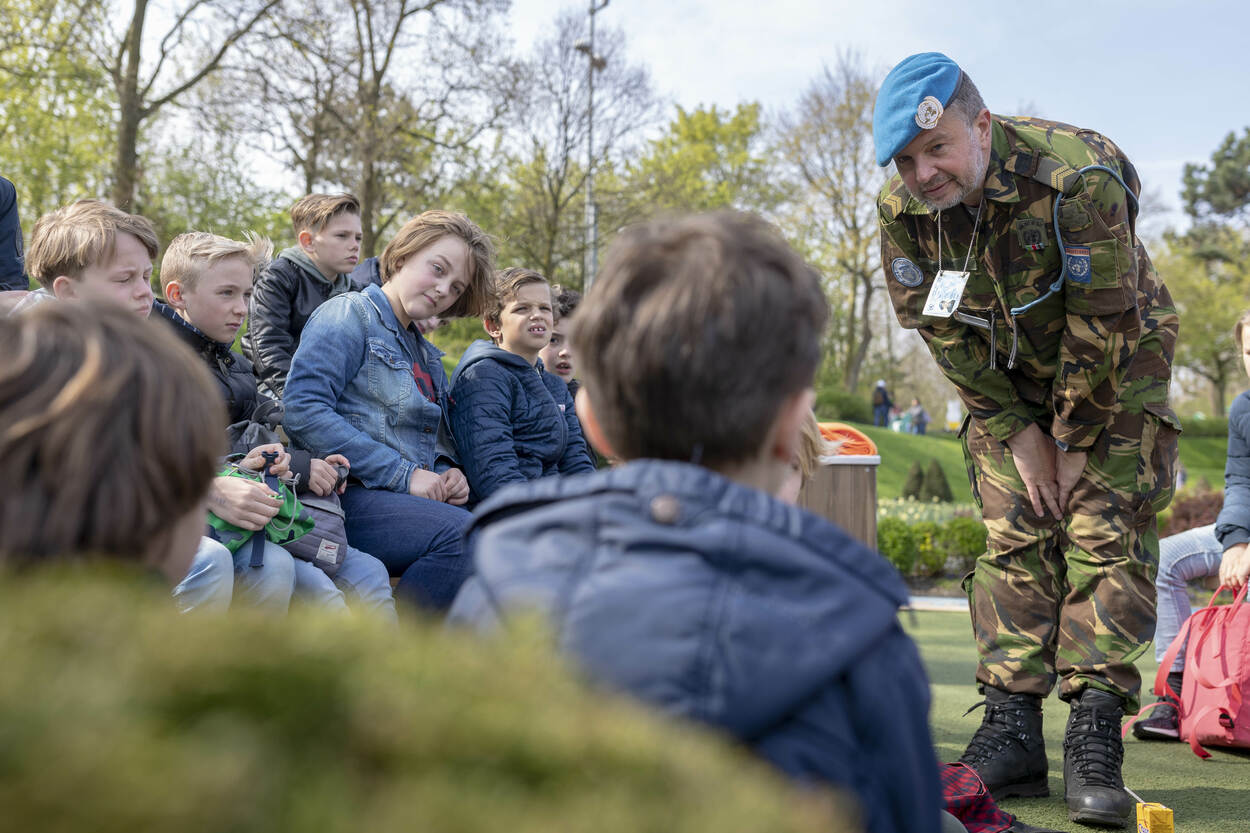 Hoe voelt het om niet in vrijheid te leven? Hoe leg je aan een kind uit wat het betekent om offers te brengen voor de vrijheid van anderen? En waarom is het belangrijk om te blijven herdenken? Ruim 300 leerlingen van het basisonderwijs luisterden 9 april in Madurodam naar de, soms aangrijpende, verhalen van overlevenden uit de Tweede Wereldoorlog en veteranen die recenter streden voor de vrijheid.