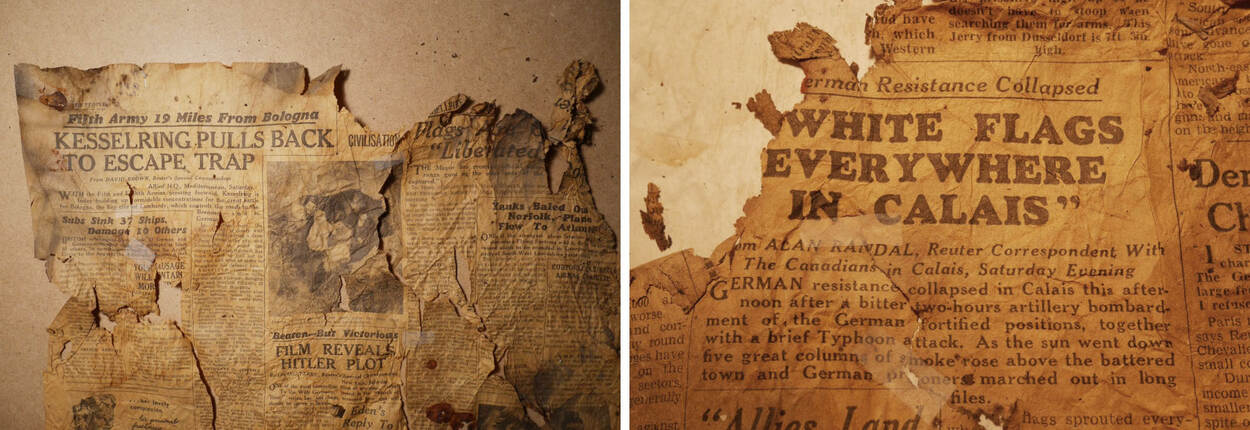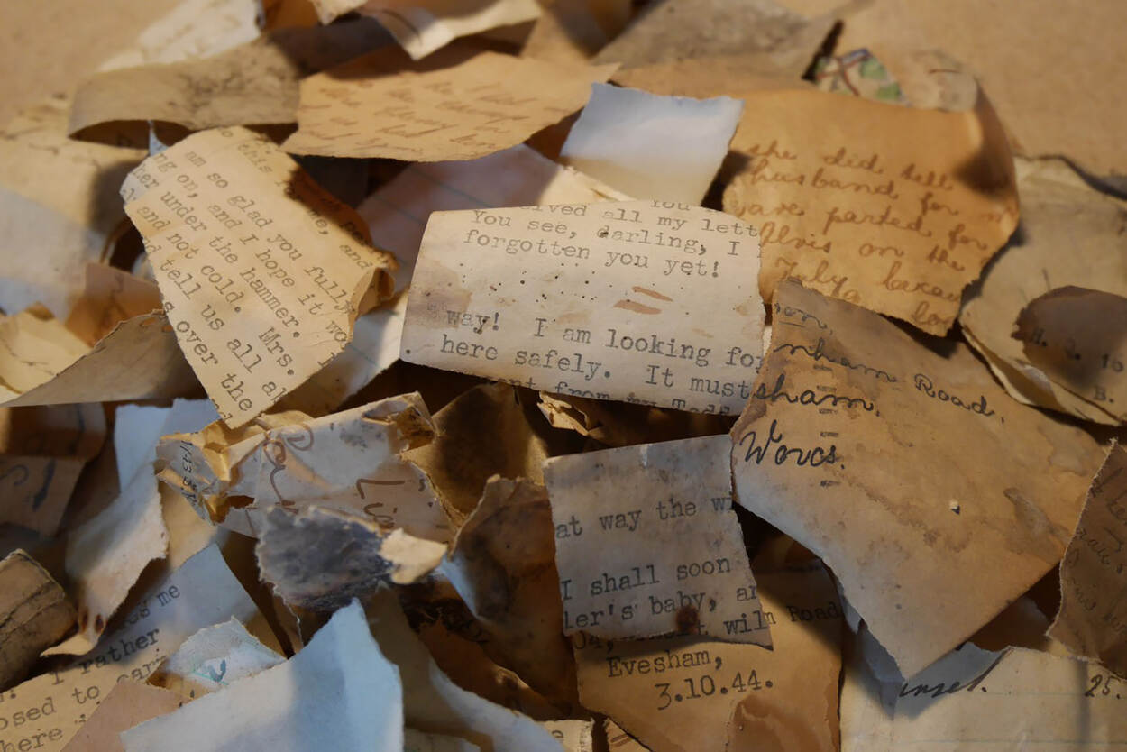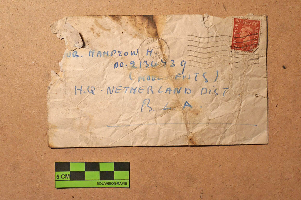 De brieven komen uit het Britse Evesham en zijn geschreven door ene Bicky. “Hope you return safely. I haven’t forgotten you”, leest Wijnen voor uit de stukjes brieven. “Dat vind ik de mooiste vondsten. Op die manier maak je contact met de geschiedenis.” Een envelop geadresseerd aan Headquarters Netherlands District bewijst dat hier korte tijd het Britse militaire hoofdkwartier voor Nederland gevestigd was. Uit de Koude Oorlogperiode vindt het team verstopte chocoladerepen, boterhammen, zakjes nootjes en gejatte gevechtsrantsoenen. “Dienstplichtige militairen mochten niets meenemen naar hun slaapzalen en deden dat dus stiekem. Dat werd bevestigd tijdens gesprekken met oud-militairen.”