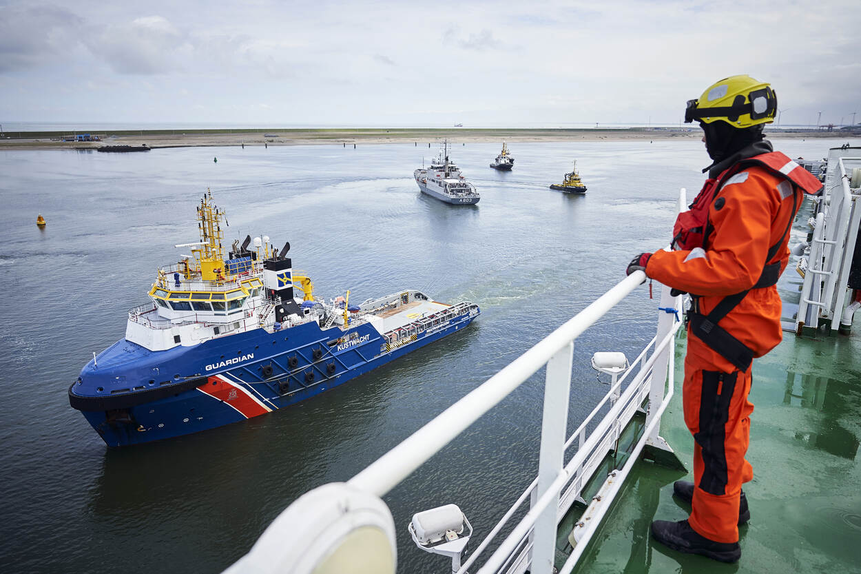 Voor het hydrografisch opnemingsvaartuig is het maar een klein stukje varen. The Pride bevindt zich niet op zee, maar ligt beschut in de Prinses Arianehaven nabij de tweede Maasvlakte. Volgens het draaiboek ziet de kapitein kans dicht onder de kust van Hoek van Holland te komen. Hier gaat het overgrote deel van de passagiers van boord. Haast is geboden, een armada van reddingsboten en aanverwante schepen zwermt rond de ferry. Helikopters van de Kustwacht en marine begonnen eerder al met een luchtbrug. Te water neemt de reddingsboot Jeanine Parqui van de KNRM als eerste passagiers aan boord.