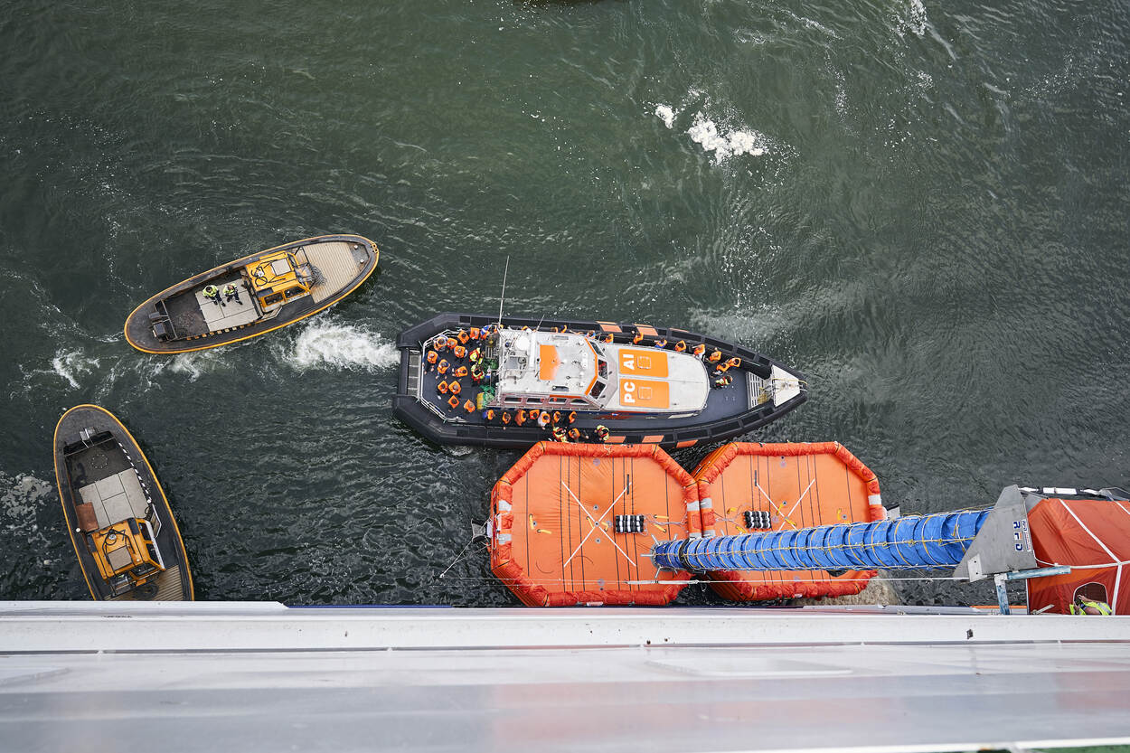 Omdat het redden van grote aantallen mensen al moeilijk genoeg is, kiest de oefenstaf ervoor Livex niet op zee te houden. “Met honderden deelnemers moet je risico’s tot een minimum beperken”, weet bevelvoerder bij het Korps Marinebrandweer Menno de Jong. Als waarnemer volgt hij Livex op afstand.