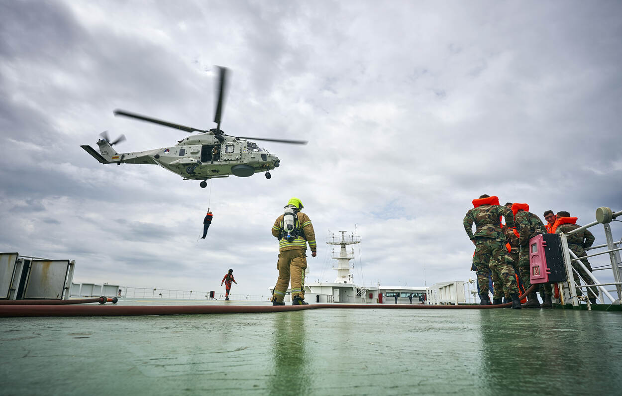 Dat zijn de Kustwacht, de Veiligheidsregio Rotterdam-Rijnmond, de Koninklijke Nederlandse Redding Maatschappij (KNRM) en andere ketenpartners. Gezamenlijk werken zij zaterdag de scheepsevacuatie-oefening Livex af. Massa’s figuranten nemen deel aan deze exercitie, die om de vijf jaar plaatsvindt. Organisator is de Kustwacht en ook de Koninklijke Marine doet mee. Onder meer met een NH90 maritieme helikopter en mariniers van 22 Raiding Squadron in de rol van evacués. Zr. Ms. Luymes helpt bij het overbrengen van passagiers naar de Berghaven in Hoek van Holland, waar ze worden opgevangen.