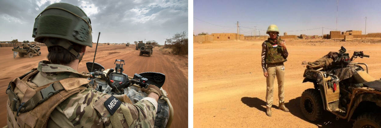 "Ik heb mij altijd welkom op Kamp Castor gevoeld en genoten van iedereens inzet. Ik werkte samen met jongens van 21 die aan de voertuigen sleutelden, Minusma stafleden uit tig landen met wie ik mijn ideeën en analyses deelde en de lokale bevolking. Heel afwisselend. Aan het militaire leven heb ik mij zo goed mogelijk aangepast en veel bijgeleerd. Naast meedraaien in alle planningsprocessen weet ik nu ook hoe belangrijk het is om je coördinaten op orde te hebben, je scherfvest aan te houden tijdens patrouilles en geen rommel te maken in de Bushmaster (pantserwielvoertuig, red.). Ook belangrijk: onderweg niet te vaak hoeven plassen en niet te lang praten tijdens bevelsuitgiftes en hot wash ups (overleg direct na patrouilles om kort en krachtig te evalueren, red.)."