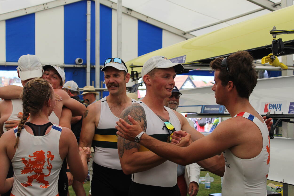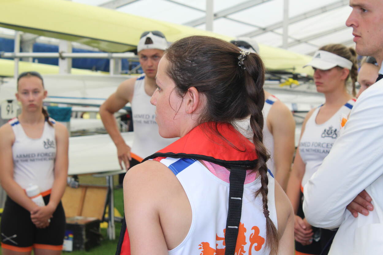 Na 7 minuten knallen, met een hartslag van 195 en een zwarte waas voor de ogen, finisht team Armed Forces Netherlands op 4 bootlengtes achter Australië en is daarmee uitgeschakeld. “Je kunt verliezen door slecht te roeien, maar je kunt ook verliezen terwijl je weet dat je er alles aan hebt gedaan. En dat hebben we zeker als team”, kijkt stuurvrouw Annabel Oggel terug. “We hebben doorgezet, wilden steeds meer, waren niet snel tevreden. Dat kenmerkt trouwens alle roeiers.”