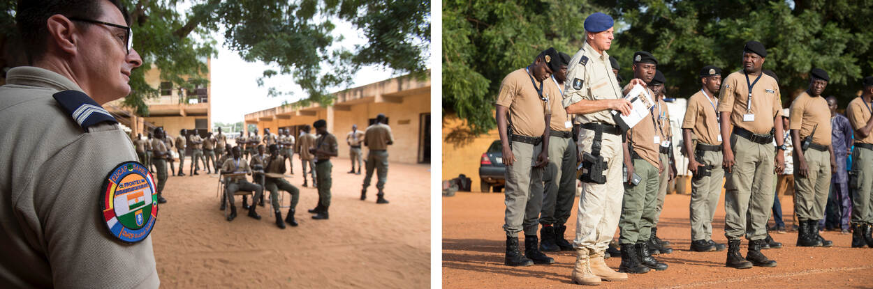 Na afloop van de certificaatuitreiking blikken de marechaussees terug op een paar intensieve, maar nuttige weken. “Ik had er niets van willen missen”, vertelt Rudi enthousiast. “Ik haal er altijd veel voldoening uit als ik mensen iets kan meegeven.” Tijdens de evaluatie spraken de lokale agenten hun dankbaarheid uit naar de instructeurs. Rudi kreeg van een leerling als persoonlijk bedankje een speld met de Nigerese vlag. “Daar doe je het voor”, besluit Rudi glunderend.