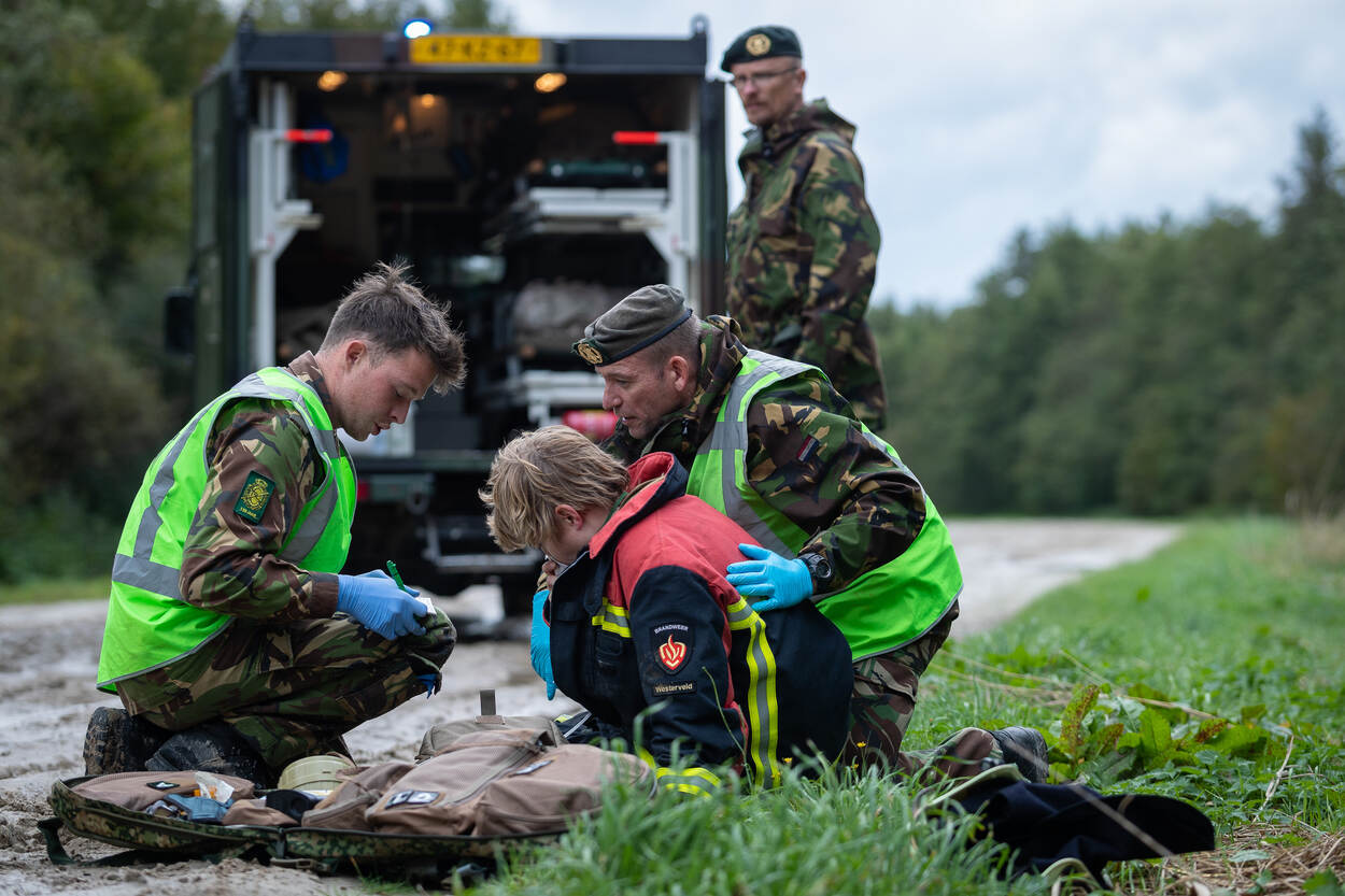 Ambulancediensten hebben, uitzonderingen daargelaten, geen terreinvoertuigen. Voor gewondenafvoer in natuurgebieden zijn ziekenauto’s van Defensie perfect. Omdat het hier om een nationale operatie gaat, verrichten veel reservisten het militaire werk. In dit geval ondersteunen Reservisten Specifieke Deskundigheid van 400 Geneeskundig Bataljon de Algemeen Militair Verpleegkundige van 43 Gemechaniseerde Brigade.
