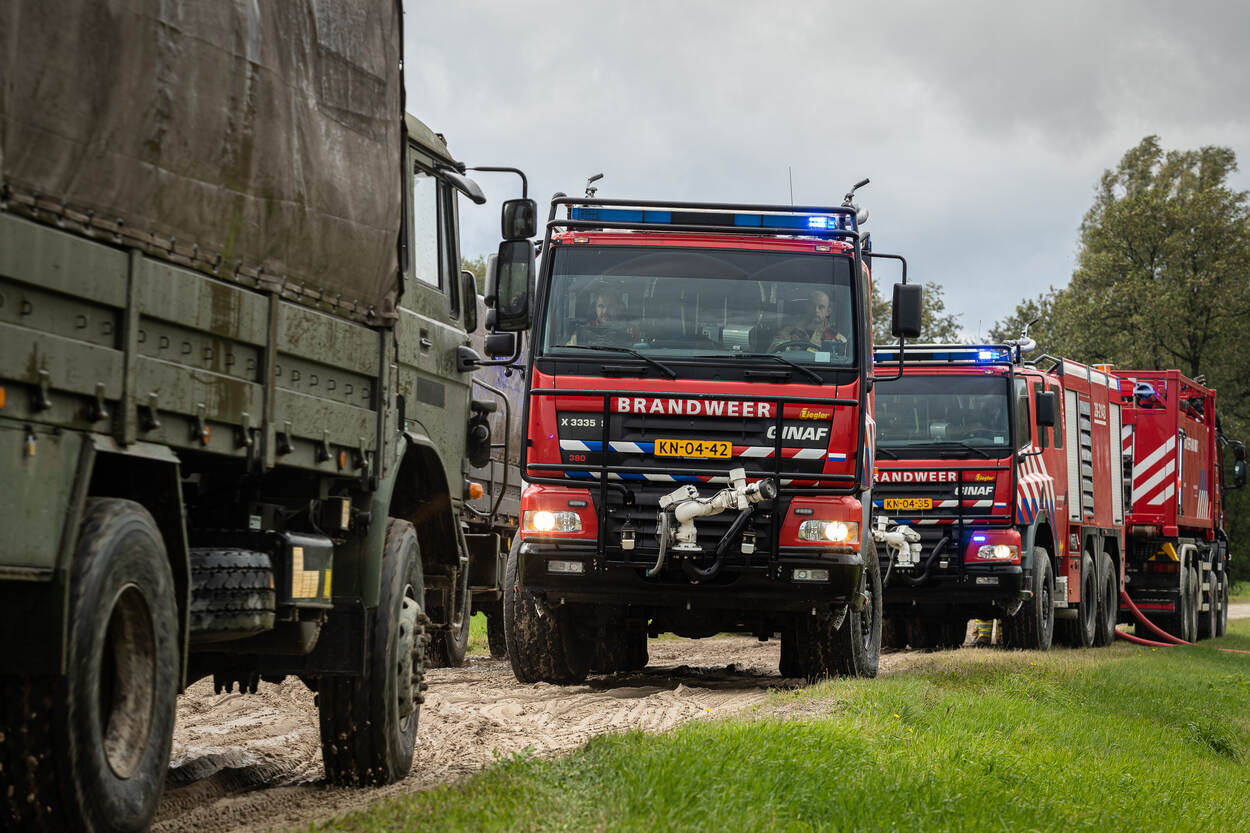 “De regen moet je maar even wegdenken”, lacht brandweercommandant en hoofd incidentbestrijding Veiligheidsregio Drenthe Gert-Jan Stuivenberg. Druppels rollen van zijn hoofd. “Onze hulpdiensten zijn bij onder meer natuurbranden altijd snel ter plaatse. En de brandweer heeft veel materieel en personeel. Maar bij een grootschalige of langdurige inzet ontstaan soms capaciteitsproblemen. Dan is Defensie een buitengewone aanvulling.”