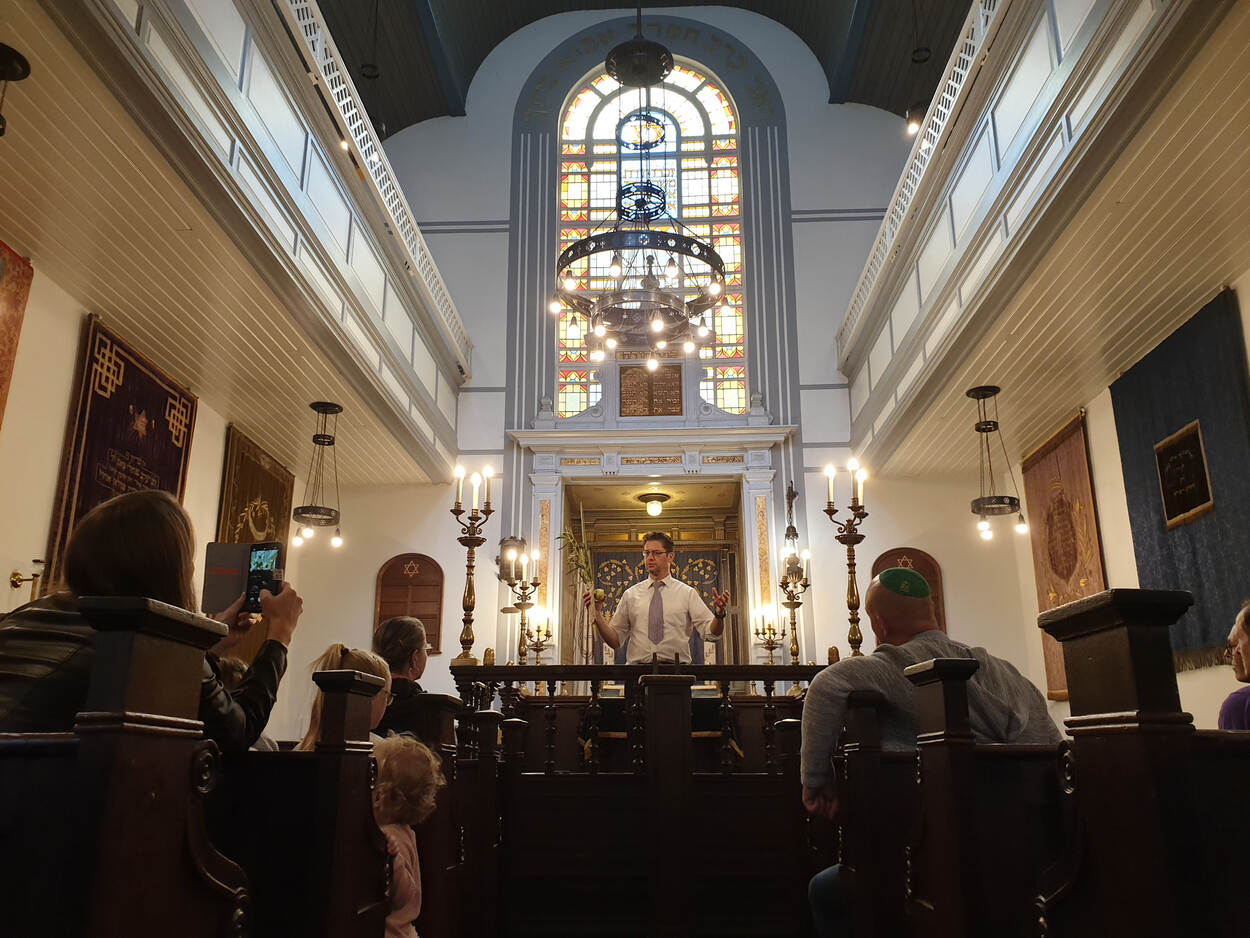 Tussen 13 en 20 oktober vond het Joodse Loofhuttenfeest (Soekot) plaats. Een feestdag waar ook de Joodse Geestelijke Verzorging bij Defensie bij stilstond in een synagoge in Amsterdam. Op de foto krijgsmachtrabbijn David Gaillard met een loelav (looftak). Foto: kapitein Yaïr da Costa.