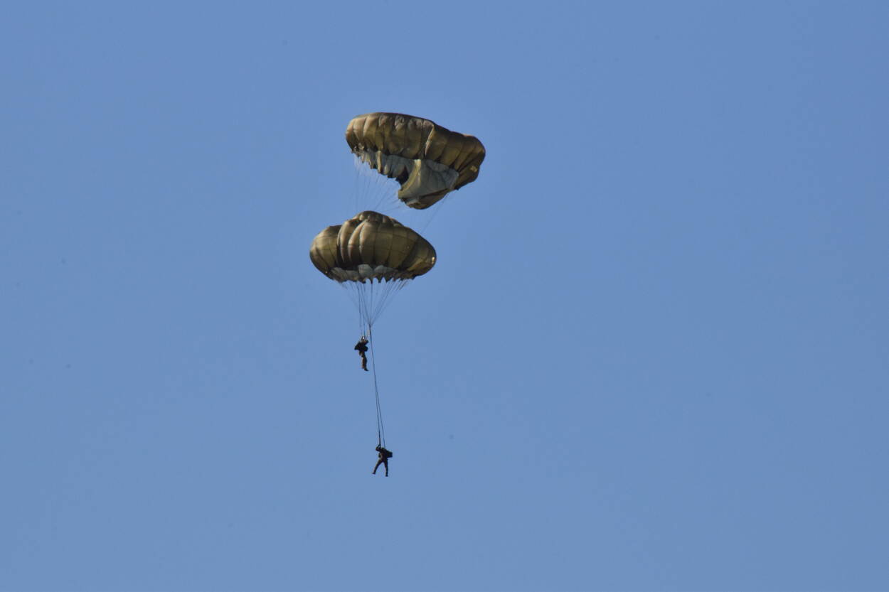 Een foto van een Poolse parachutist die in Nederland is voor een oefening. Foto: Louis Meulstee.