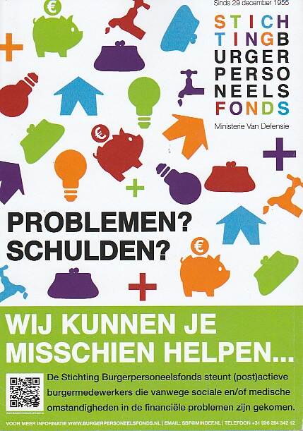 Stichting Burgerpersoneel Fonds Ministerie van Defensie (SBF), dat defensiepersoneel ondersteunt bij financiële problemen, bestaat dit jaar 65 jaar. En na al die dienstjaren is dit fonds nog lang niet overbodig. “Zo’n anderhalf miljoen gezinnen in Nederland hebben schulden. Die problemen zijn er dus ook onder ónze medewerkers.”