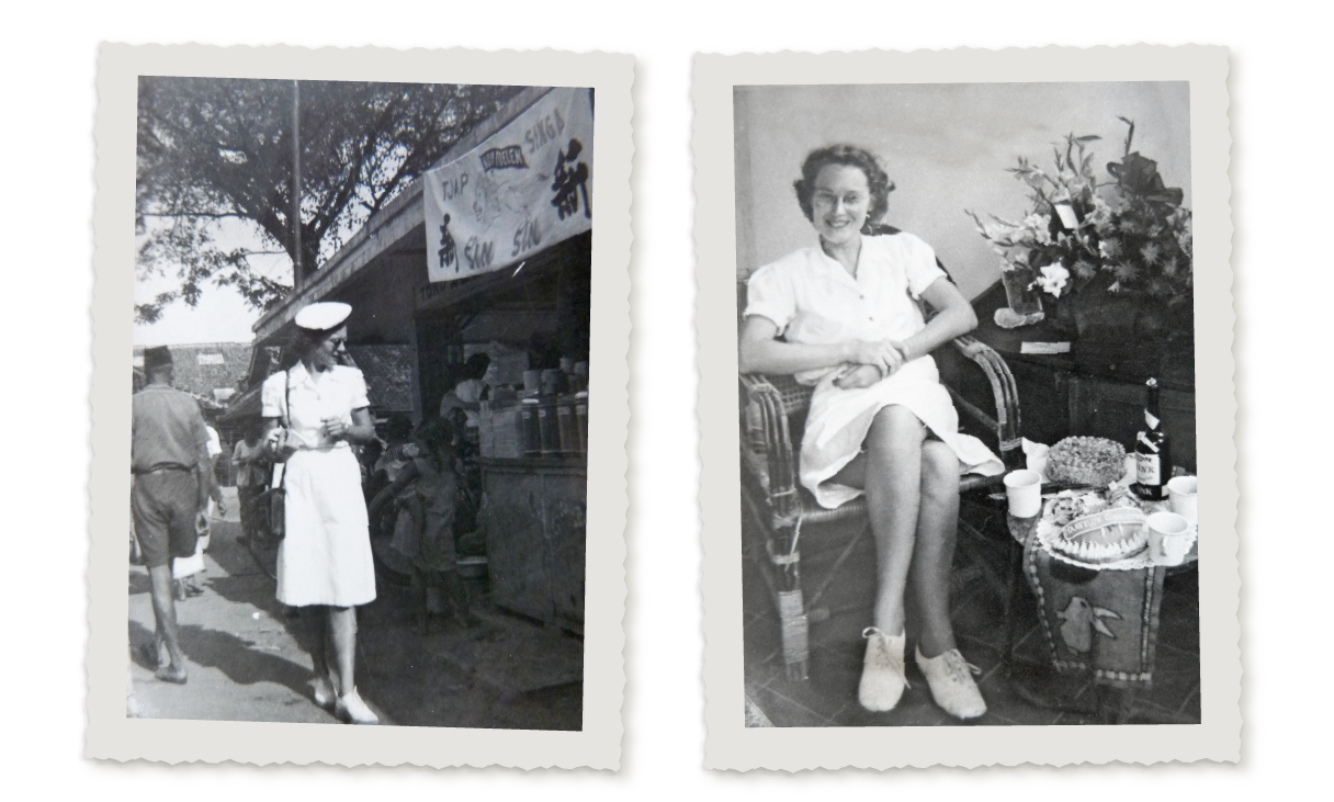Op 8 november 1946 ben ik met de KLM vertrokken. Eenmaal in Batavia kwam niemand ons ophalen en later bleek dat ze het codesysteem allang kenden. Ik heb toen 2 jaar lang gewerkt als secretaresse van de stafofficier codedienst. Ik moest bijvoorbeeld de codelijsten maken, namen verzinnen voor de schepen, de havens en de steden. De PTT was namelijk in handen van de Indonesiërs en die mochten niet weten waar onze schepen naartoe gingen.