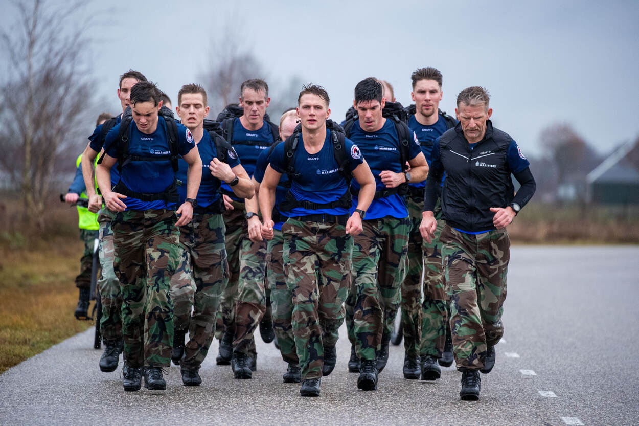 Om geld in te zamelen voor fysiek of mentaal gewonde collega’s gaat een team van het Korps Mariniers op 4 april aanstaande het parcours van de Rotterdam Marathon speedmarsend afleggen. Ze trainen keihard om het record van 4 uur, 16 minuten en 48 seconden – in handen van hun Engelse collega’s - te breken. Sergeant-majoor Jasper Verolme legde een training in Gilze-Rijen vast.