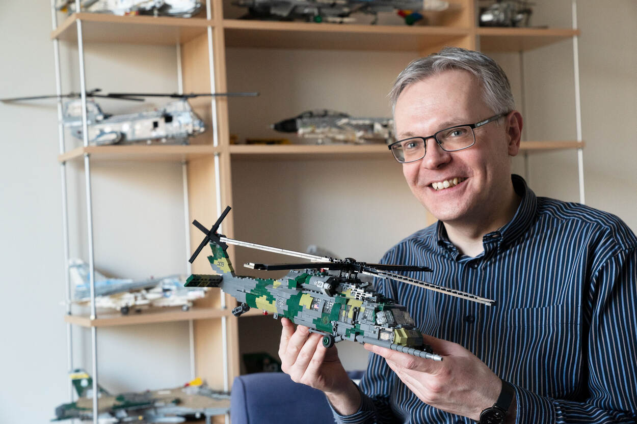 Nog steeds is hij enthousiast over hoe het ingewikkelde landingsgestel van zijn MH60G Pave Hawk wentelwiek is gelukt. “Het was veel improviseren, maar op deze schaal krijg ik hem niet beter”, oordeelt Ralph met het model in de hand na weer een kritische blik. Voor de as van het wiel gebruikte hij een groen hoofdje van een LEGO-poppetje. Ralph is geen kleine jongen in de mondiale LEGO-wereld. Zijn naam is welbekend. 5 prijzen behaalde hij tijdens het grootste Amerikaanse LEGO-evenement Brick Fair. Onder meer voor Best Military Aircraft en Best Vehicle. De wetenschapper bouwt het liefst militaire vliegtuigen, dito heli’s en auto’s na. Raketten heeft hij ook in de verzameling, maar die zijn in de minderheid. “Ik hou van kleine modellen met veel details.” Na een jaar of 10 haalt Ralph ze meestal uit elkaar. Dan is hij erop uitgekeken en bouwt hij sommige opnieuw. “De tweede keer worden ze vaak nog beter. Al doende leer je, hé?”