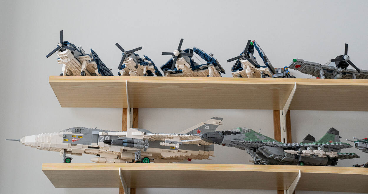 Ralph bouwt zijn modellen helemaal zelf. Ze zijn dus niet gefabriekt door LEGO, dan is het geen kunst. Sowieso maakt de fabrikant uit Denemarken geen militair spul. Past niet bij het imago. Maar niets staat bouwers in de weg de steentjes zo te ordenen dat er een fraaie Republic F-105 Thunderchief of een mooie F-16 met serial 063 ontstaat. Het toestel waarmee kolonel-vlieger Peter Tankink tijdens operatie Allied Force (1999) boven Kosovo met een AMRAAM een MIG-29 vernietigde. Opschriften maakt Ralph op de computer. Vervolgens drukt hij ze af op dun papier en plakt ze met plakband vast.