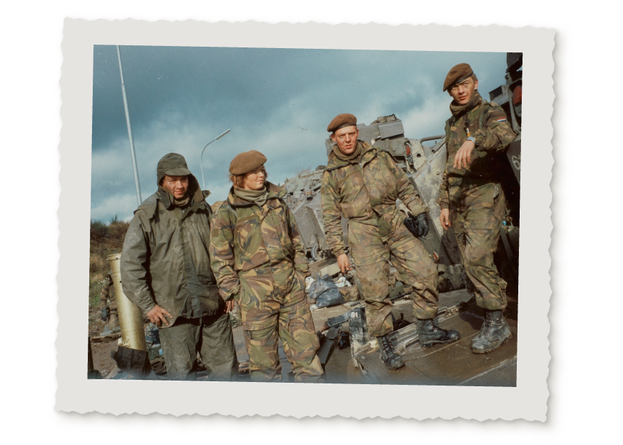 Maar na een pauze van 10 jaar en 3 kinderen rijker, komt ze weer terug bij Defensie. Weer bij de infanterie. “Ik had allerlei baantjes in de sportwereld gehad. Dat hield me fit. Ik miste alleen het werk bij de krijgsmacht ontzettend. Toen ik er eenmaal weer werkte heb ik nog een vierde kind gekregen. De combinatie van het werk én een gezin lukt door al de hulp van mijn achterban. Heel bijzonder dat mijn jongste zoon nu ook voor de landmacht heeft gekozen.”