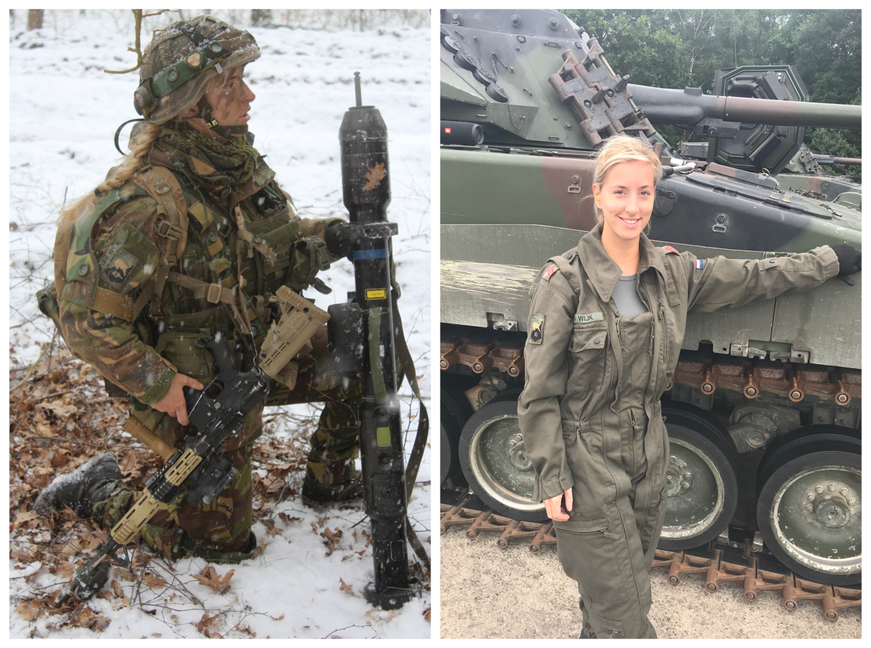 Over het bewegen in mannenomgeving is Esmée daarentegen nuchter. “Omkleden tijdens bivak? Gewoon in het zicht van de anderen. Bij de infanterie helpt het niet om preuts te zijn.” Seksueel getinte opmerkingen? Ja, dat komt voor vertelt ze. “Maar ze krijgen gewoon een grote scheur terug. Ik zie het als compliment dat ik er goed uit zie” En naaktposters? “Laat ze die toch lekker hangen, dat boeit me allemaal niet.”