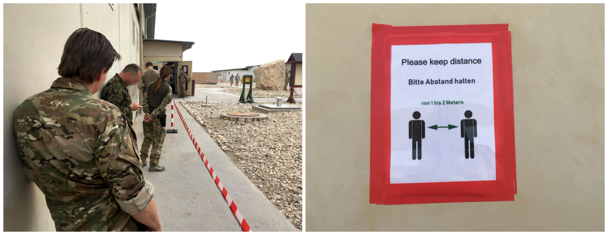 Social distancing is lastig op een militaire basis. Overal en altijd zijn er mensen. En wat doe je als je juist nu een verkoudheid voelt opkomen?