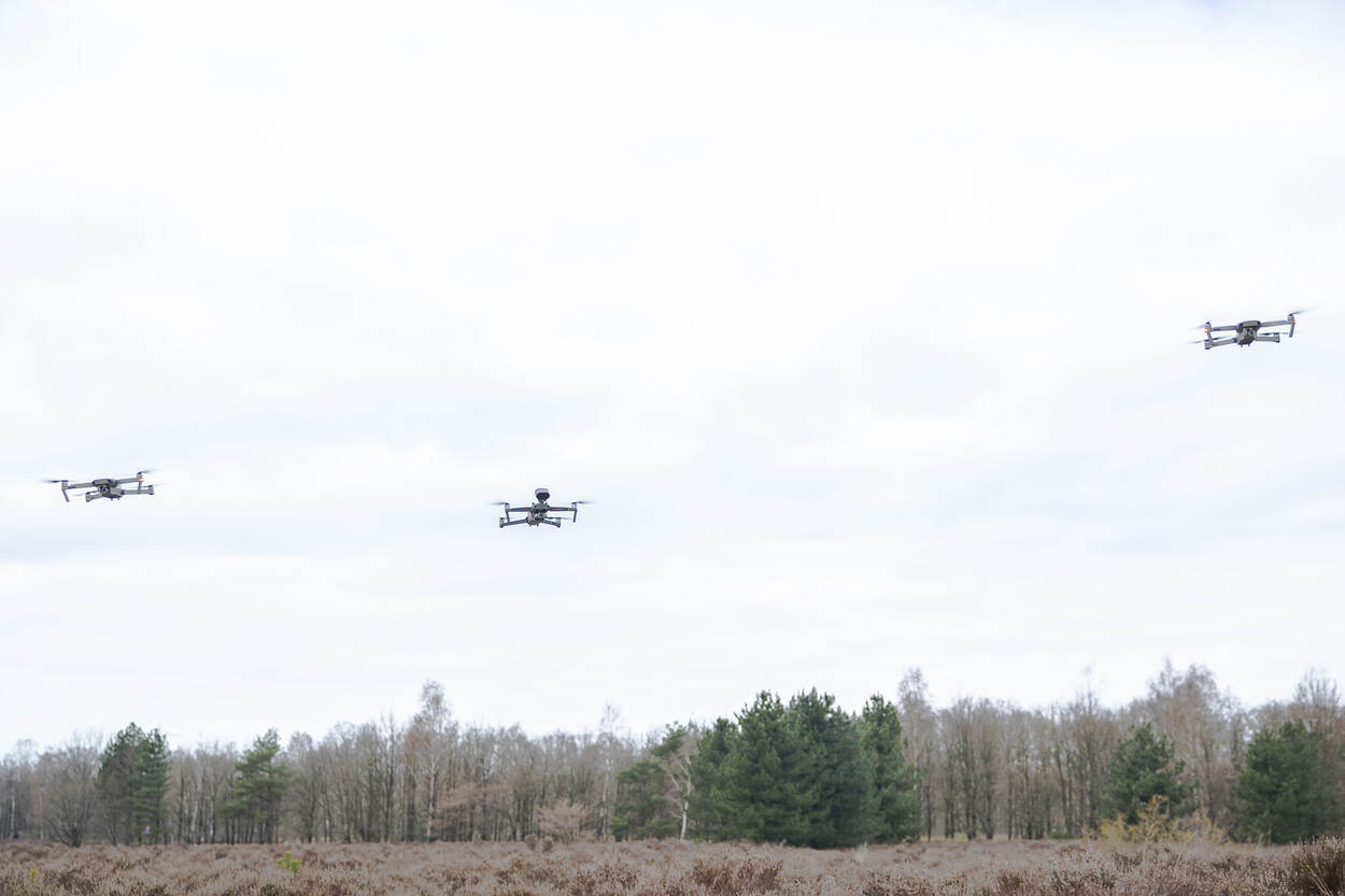 9 piloten volgen in opperste concentratie hoe de 9 drones in hun sector over de Vlasakkers scheren. “Ik hoop natuurlijk stiekem dat we in de toekomst van meerwaarde kunnen zijn”, vertelt piloot Stephan. “Als we vandaag bewijzen dat we zo grootschalig kunnen optreden.”