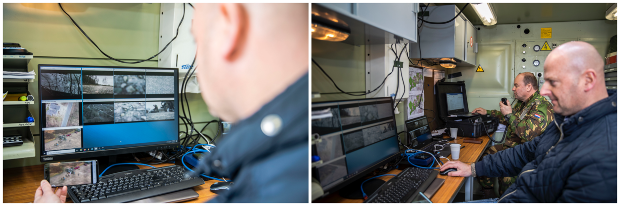In de commandocontainer voegt technicus Patrick de beelden van 9 livestreams samen en demonstreert ze op een scherm. Samen beslaat het een gebied van 5 tot 7 kilometer. “Ik kan het algoritme zo instellen, dat de drone zoekt op een samenscholing van mensen. Vervolgens kan ik de drone met luidspreker erop af sturen of een hulpverleningsdienst in de buurt informeren.”