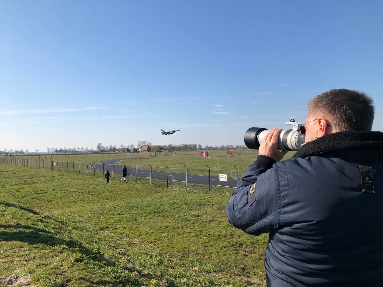 Gewapend met camera zit Henk van der Lugt (60) in het zonnetje op de spottersplaats in Marssum. Hij wil best wel een paar vragen beantwoorden. Natuurlijk wel op 1.5 meter afstand. Om maar direct met de deur in huis te vallen; waarom 'spotten' terwijl er een crisis gaande is? “Eigenlijk hadden mijn maat en ik al gepland om naar Leeuwarden te gaan, daar zou immers de oefening Frisian Flag zijn. Die ging niet door, maar toevallig was ik vrij en met dit mooie weer leek het prima om even hiernaartoe te rijden.”