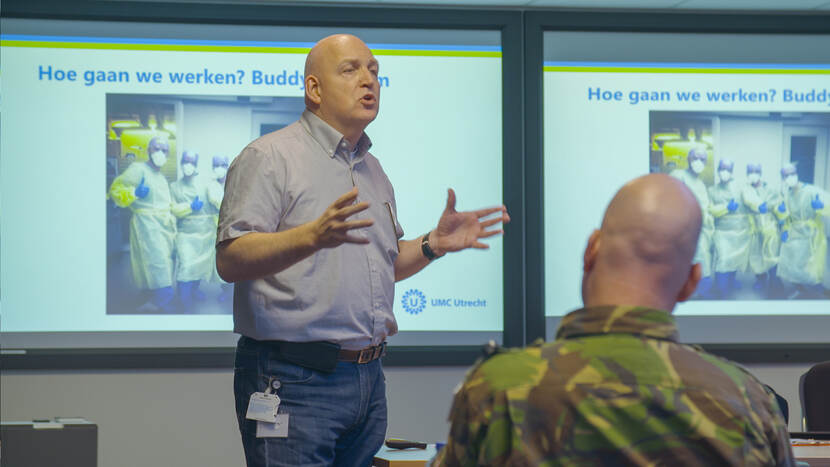 De ic-capaciteit is geleidelijk aan vergroot. Enerzijds om te controleren of al de benodigde middelen in voldoende mate voorradig waren. Anderzijds om het personeel van Defensie en het UMCU aan elkaar te laten wennen. “En de chemie is goed”, benadrukt Esther. “De militairen zijn getraind om snel en op onverwachte momenten ingezet te worden. In combinatie met de kennis van het medisch personeel van het Utrechtse ziekenhuis ontstaat een ijzersterke formule.”