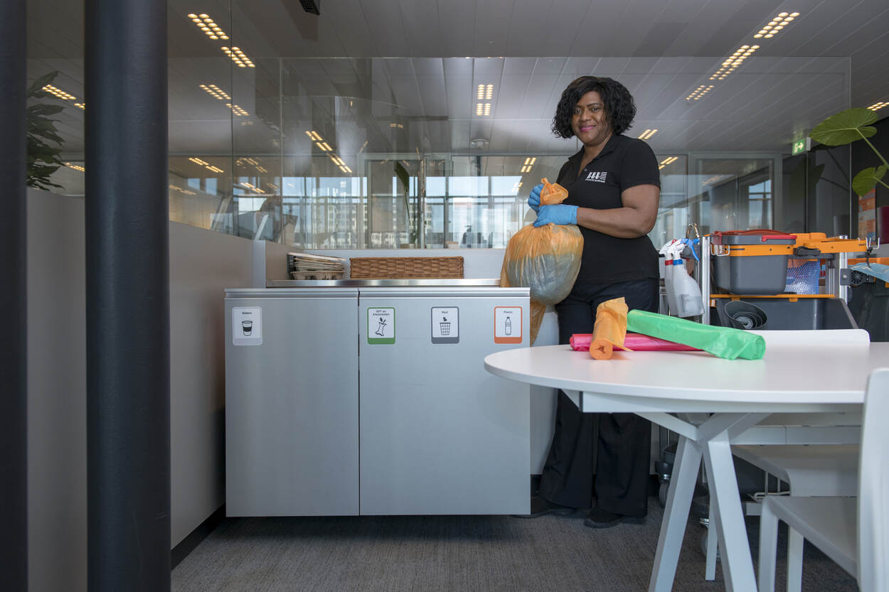 Afhankelijk van de locatie gaan schoonmaakwerkzaamheden in aangepaste vorm door. Op de Johan Willem Frisokazerne in Assen zijn de interieurverzorgers nog steeds actief. Zoals Anna Patty van schoonmaakbedrijf GOM, die dagelijks met haar trolley in gebouw 55 en het Gezondheidscentrum bezig is.