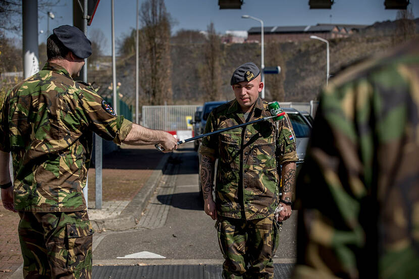 Handen wassen, handen wassen! De Buitenlandopleiding (BULA) van de Koninklijke Marechaussee gaat gewoon door. Deze opleiding is voor militairen die individueel worden ingezet in het buitenland. Omdat hun inzet ook doorgaat, stopt de opleiding niet. Foto: sergeant Aaron Zwaal