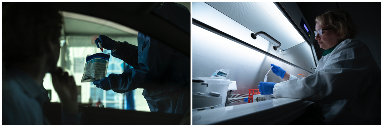 Bekijk hoe een drive through-coronatest in zijn werk gaat: