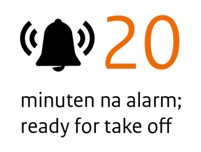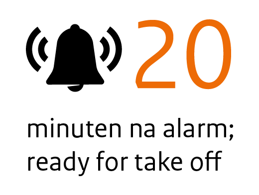 De hulpvraag van de ambulanceverpleegkundige ter plaatse komt binnen bij de meldkamer. Na het alarm spoedt een Aeromedical Evacuation (AE) Team, samen met een NH90-vlieger en een copiloot of tactisch coördinator, zich naar de heli. Het AE-team bestaat uit een AE-arts en een AE-verpleegkundige. Maximaal 20 minuten na melding moet iedereen in ‘de kist’ zitten. Opstarten en wegwezen. Na take-off kan het team in 10 minuten op Vlieland staan.