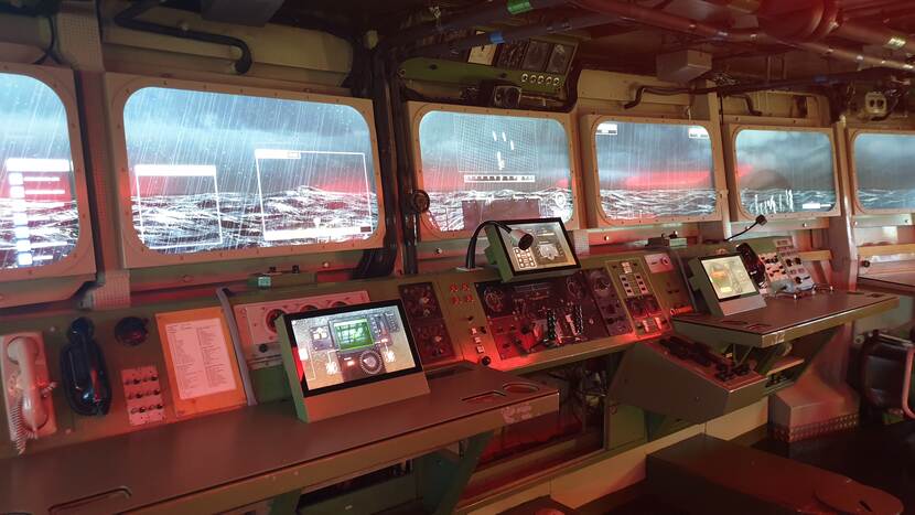 In het brughuis van het voormalige fregat De Ruyter opent deze dagen een interactieve tentoonstelling over de Koude Oorlog. “Zuur dat we die niet aan het publiek kunnen laten zien”, sipt Boelema.