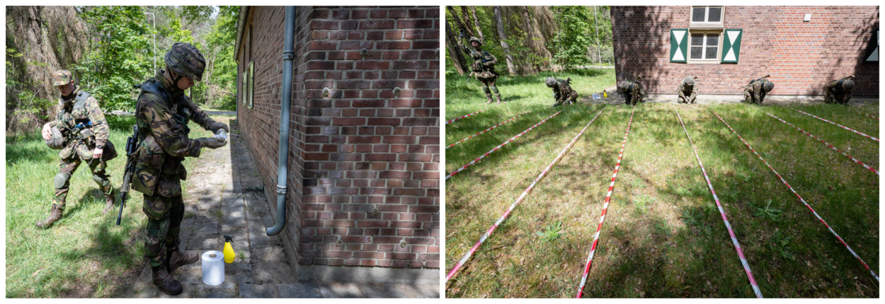 ‘Even’ een wapen overpakken is er niet bij: het schiettuig moet eerst worden gereinigd. Mijnen prikken gebeurt in afgezette paden en na het poetsen van de prikker. De hindernisbaan trotseren de militairen nu met tactische handschoenen aan. In de gebouwen zijn looprichtingen gecreëerd. “Deuren worden zo min mogelijk aangeraakt en ga zo maar door. Overal hebben we diverse aanpassingen aangebracht”, vertelt adjudant Brom.