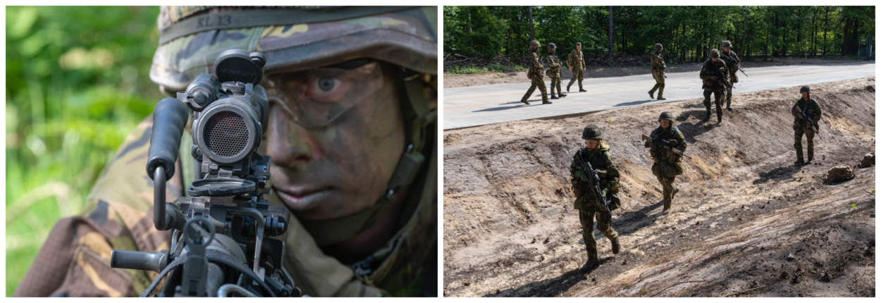 De opleidingen zijn hervat, met inachtneming van de risico’s. Het is een kritiek proces, vertelt adjudant Tim Brom van de MFO. 74 al gevorderde infanteristen en verkenners volgen op dit moment de opleiding in de grondgebonden manoeuvres. “Als we niet doorgaan en de opleiding nog langer stilleggen, bloeden onze bataljons en het verkenningseskadron leeg.”