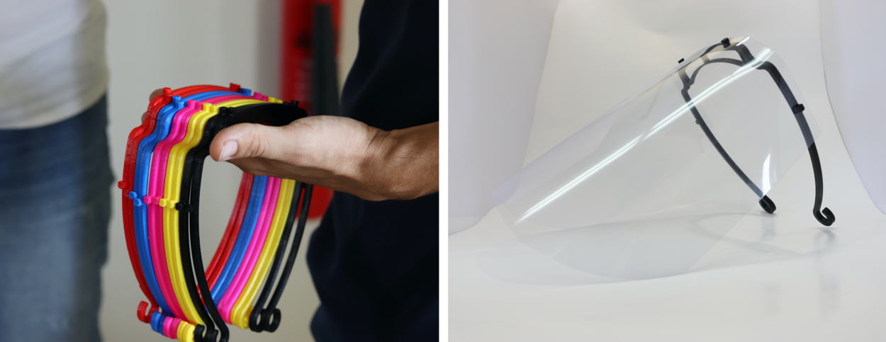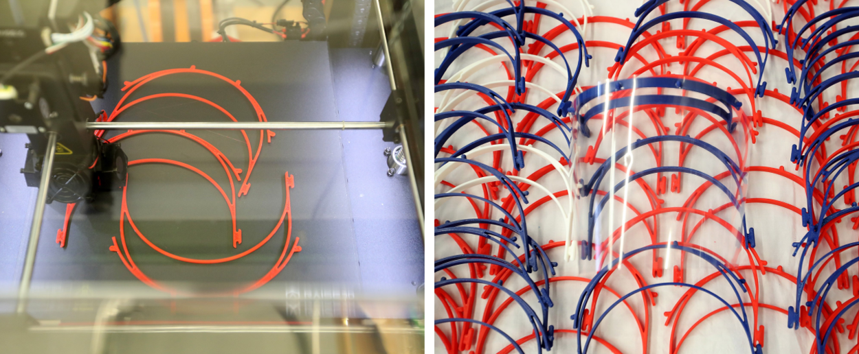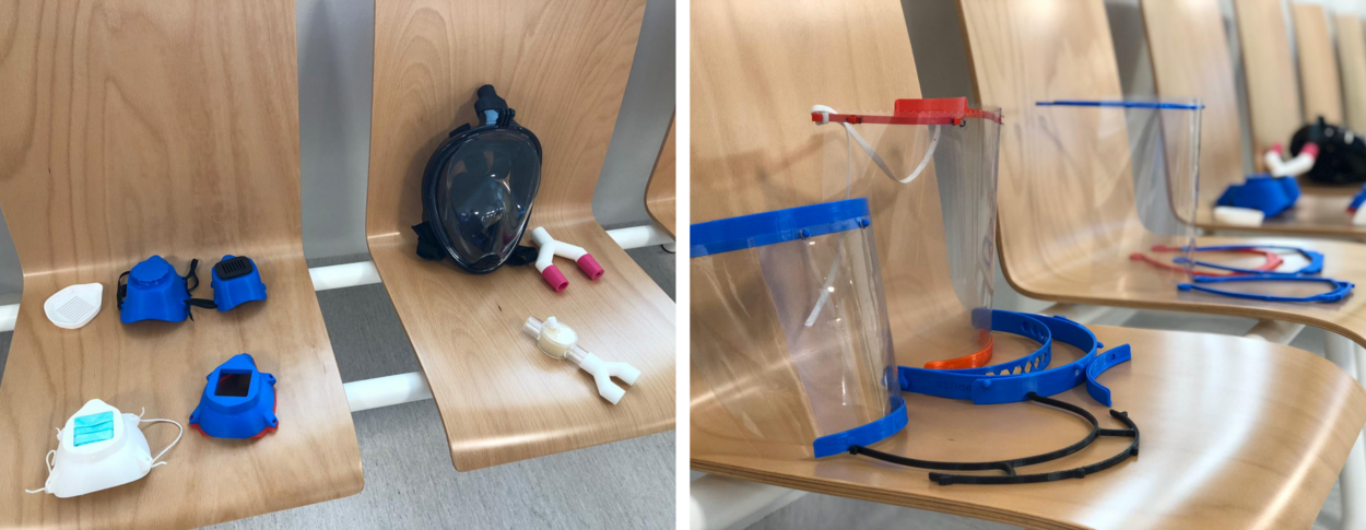 Het grootste tekort is er momenteel aan gezichtsmaskers (face shields). Het bedrijf Xerox heeft met de taskforce plastic schermen geleverd en het projectteam print daar nu hoofdbanden voor. Hierna zijn er tests uitgevoerd om te kijken of aanpassingen nodig zijn aan het ontwerp. Deze proeven zijn onder meer gedaan in het CMC, een supermarkt, een huisartsenpraktijk, T-Experience (crowd management, veiligheidsbedrijf).