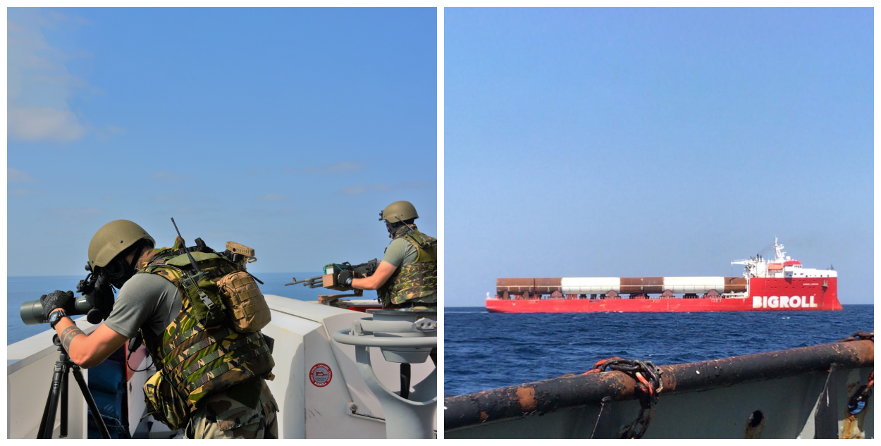 Het team stapte eind maart aan boord van de BigRoll Bering. Een Nederlandse big wide deck carrier van 170 meter lang, die grote onderdelen voor windmolens naar Taiwan moest verschepen. Onderweg, in de zogenoemde High Risk Area, hebben de mariniers het schip beveiligd tegen piraterij.