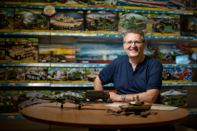 De Poolse Robert Podleś bracht begin jaren 90 een mini Sherman T-34 op de markt van bouwblokjes. Nu, 30 jaar later, is hij de man achter de grootste collectie militair materieel van kunststof steentjes ter wereld. De populariteit ervan is groot en oud-militair John Klaver snapt wel waarom. Na 25 jaar bij Defensie spitst hij zich toe op de verkoop van dit militaire ‘speelgoed’.