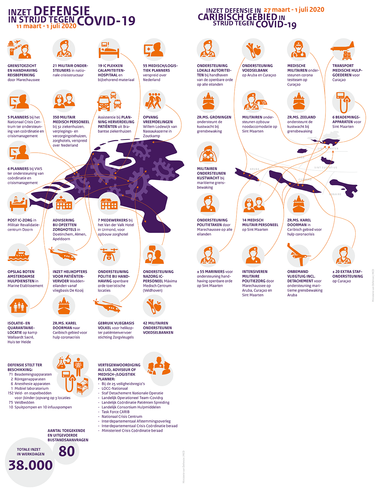 “Op 11 maart kwam de hulpverlening in Nederland op gang. Op 27 maart in het Caribisch gebied. Aanvragen voor militaire bijstand kwamen binnen bij het Crisis Actie Team (CAT). Hier werd bepaald of wel of geen hulp geboden kon worden.
