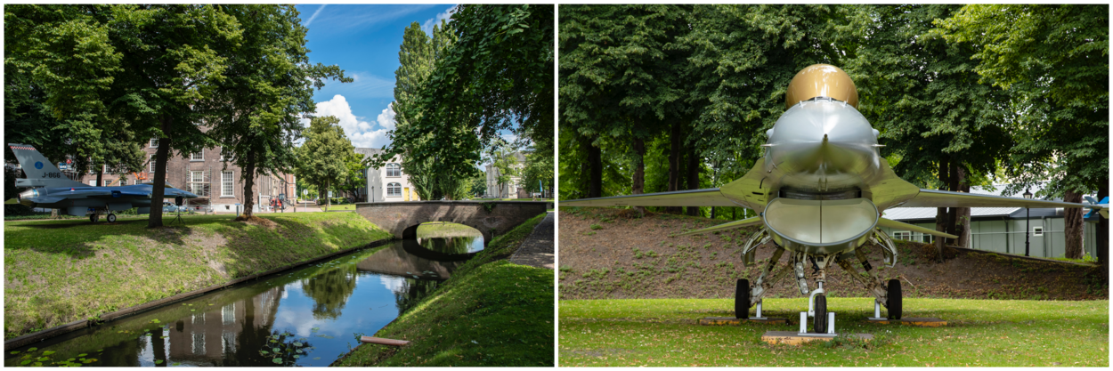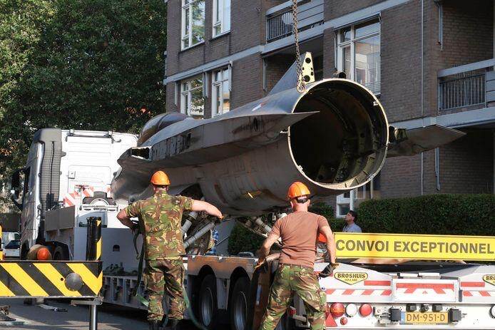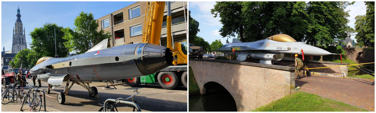 Het was vorige week al een bijzonder gezicht, toen de romp van het toestel vanaf vliegbasis Volkel door de binnenstad van Breda naar z’n nieuwe plek werd gereden. Toen nog zonder staart en vleugels. Die zijn eerder deze week gemonteerd. De kist is afgekeurd en zou worden gesloopt omdat de restwaarde nihil is. Eerder werd al duidelijk dat de vorige poortwachter naar de schroot moest. De J-866 bleek een logische vervanger.