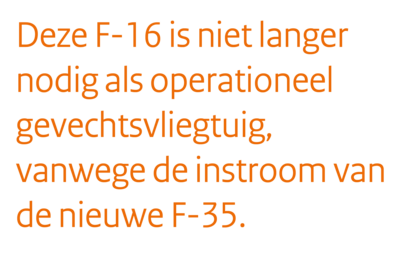 Leuk detail is dat KMA-commandant kolonel-vlieger Gerbe Verhaaf zelf ook op dit toestel heeft gevlogen. Hoeveel vluchten het precies waren weet hij niet meer, maar 1 ding wel: ‘Vliegen met een F-16 is het mooiste dat er is.”