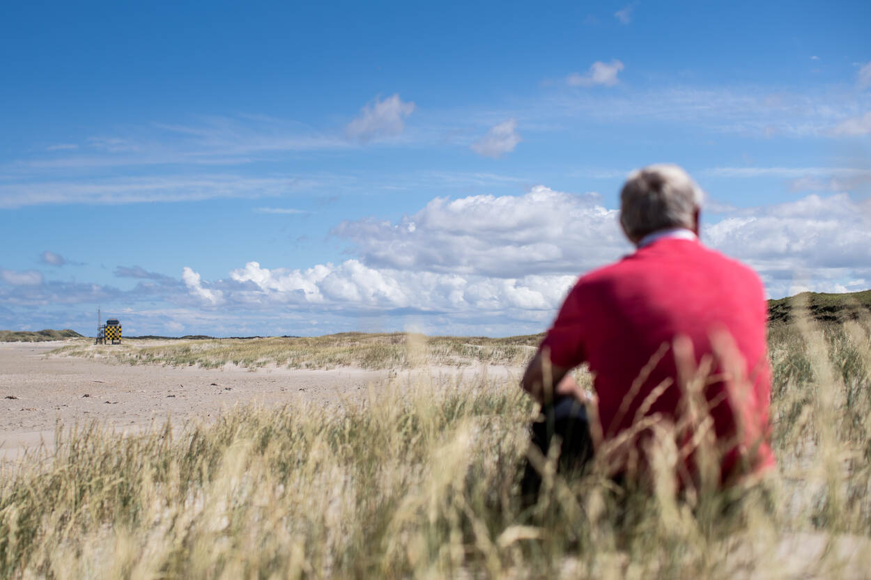 Dan kijkt hij naar buiten, waar het met windkracht 8 relatief rustig is en het zonnetje door het wolkendek probeert te prikken. “Hier schijnt altijd de zon. Wat had ik toch geluk dat ik van die 50 jaar bij Defensie er 40 op Vlieland heb gewerkt.”