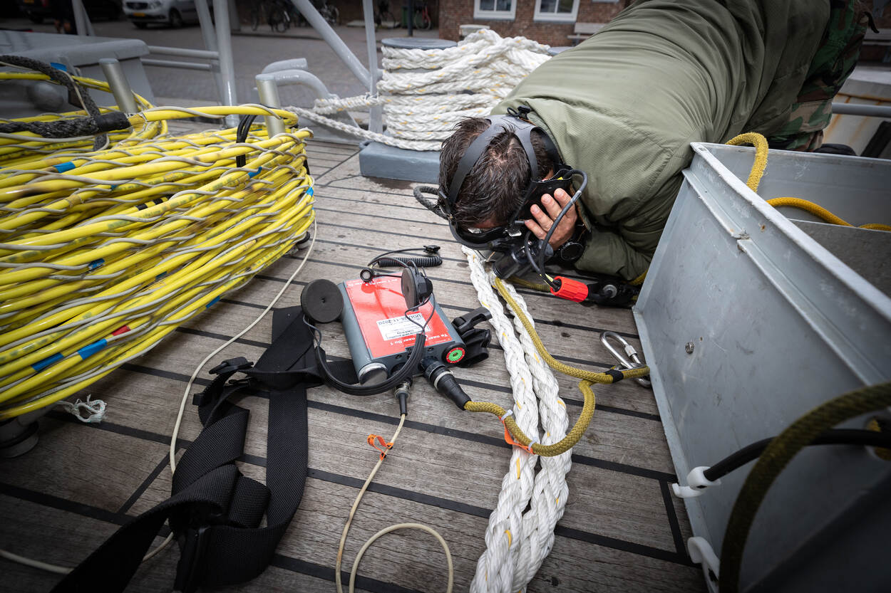 Een dag later wordt er ook munitie gevonden, waaronder .50 kogels, artilleriegranaten en een mijn. “Wat we vinden, gaat na aankomst in de haven direct door naar een speciaal opslagterrein buiten Zierikzee", vertelt In de Braekt. “Daar werkt een tweede ploeg van de EOD. Zij snijden op verzoek van TNO de munitie door met watersnijapparatuur op de plekken die zij willen.”